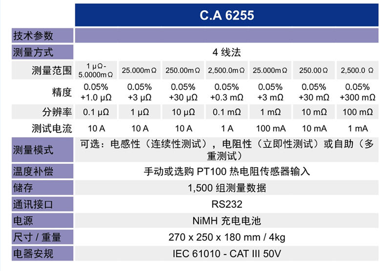 CA6255法国CA微欧计,10A 微欧计, 高精度,大量程,适用于各种环境。